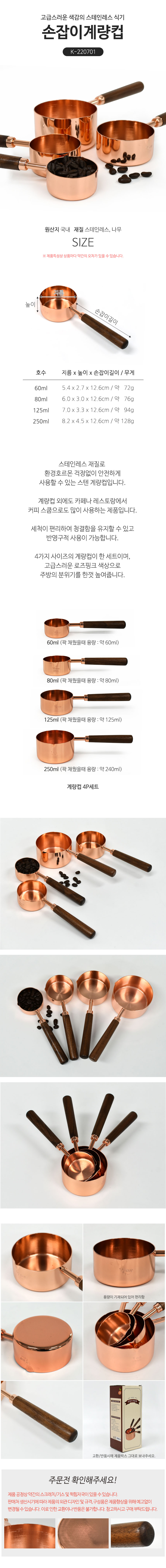 카페 레스토랑 커피 스쿱 겸용 계량컵 동도금손잡이계량컵세트
