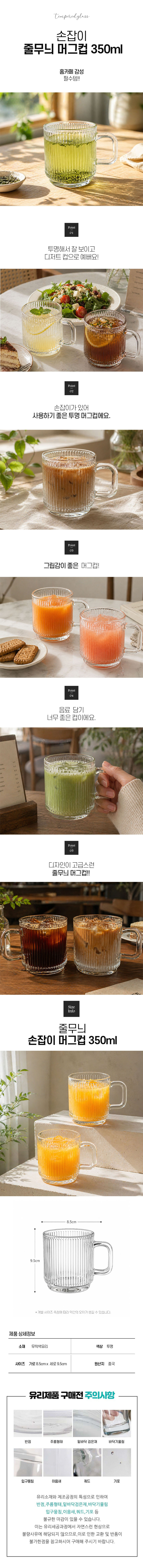 | 모델명 | 줄무늬 손잡이 머그잔 머그컵 유리컵 물컵 350ml | 재질 | 무착색 유리제 |