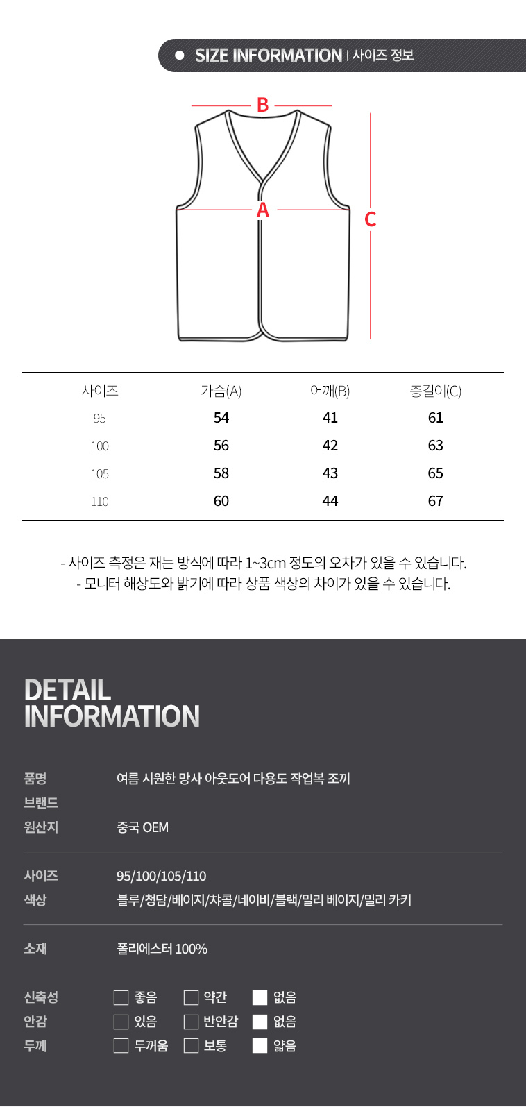 | 색상 | 상품 상세정보에 별도 표기 | 치수 | 상품 상세정보에 별도 표기 |