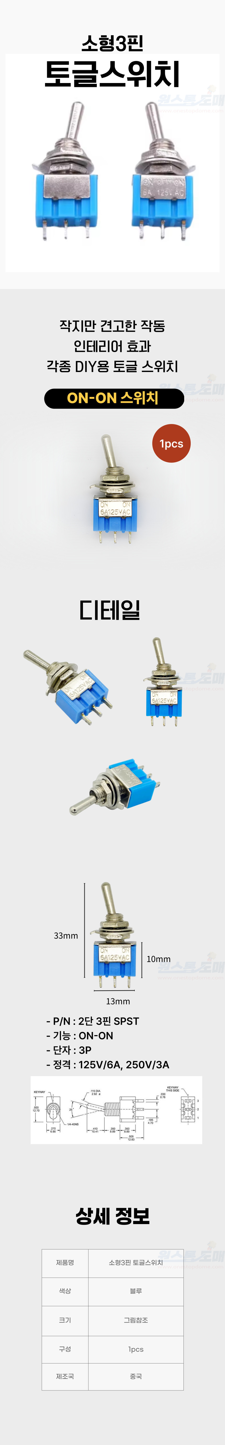 DIY용 소형 토글 스위치 3핀 ON ON 전원 제어 스위치