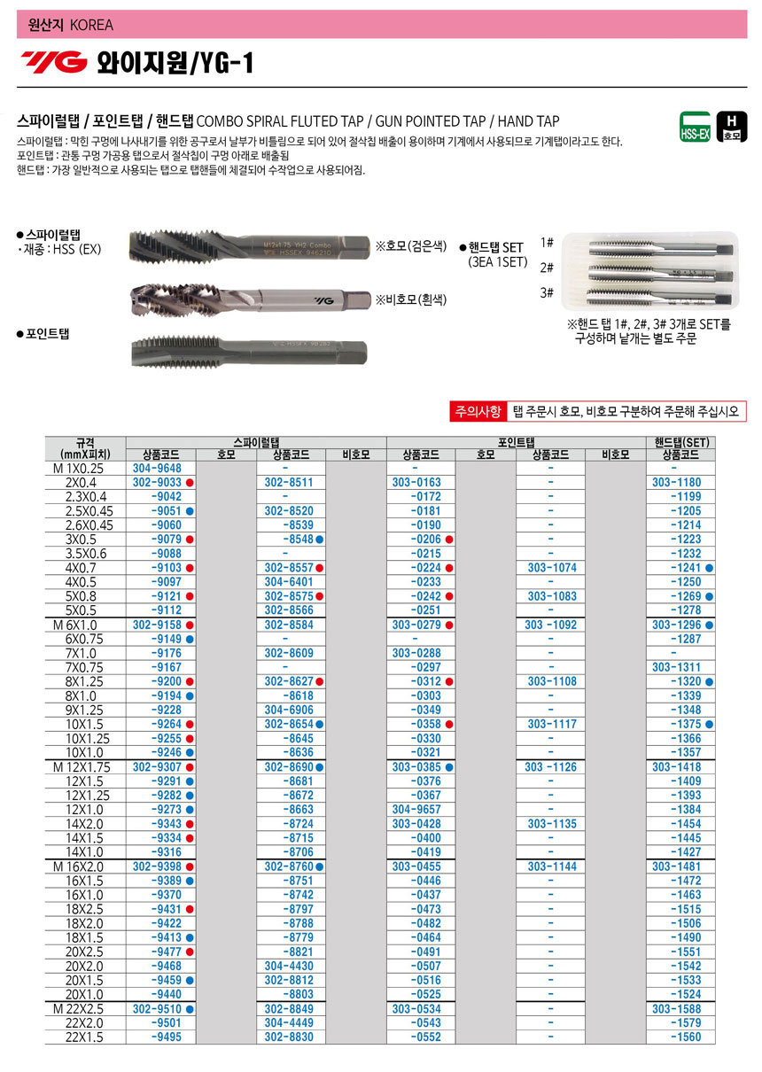 - 영문명 : COMBO SPIRAL FLUTED TAP