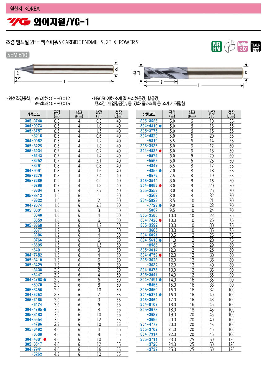 - 영문명 : CARBIDE END MILL - 2F : X-POWER S