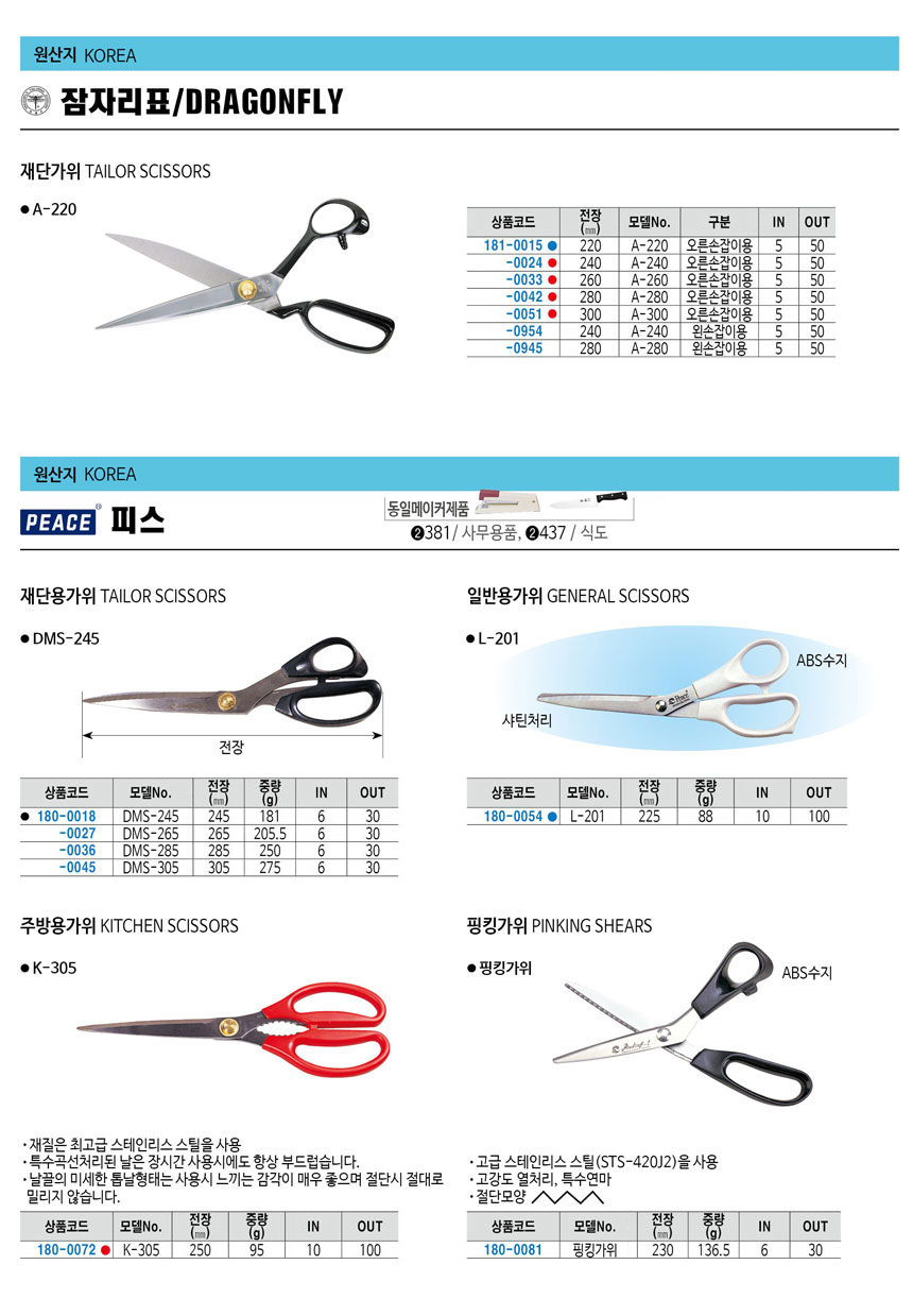재단용가위 왼손잡이용 A-240