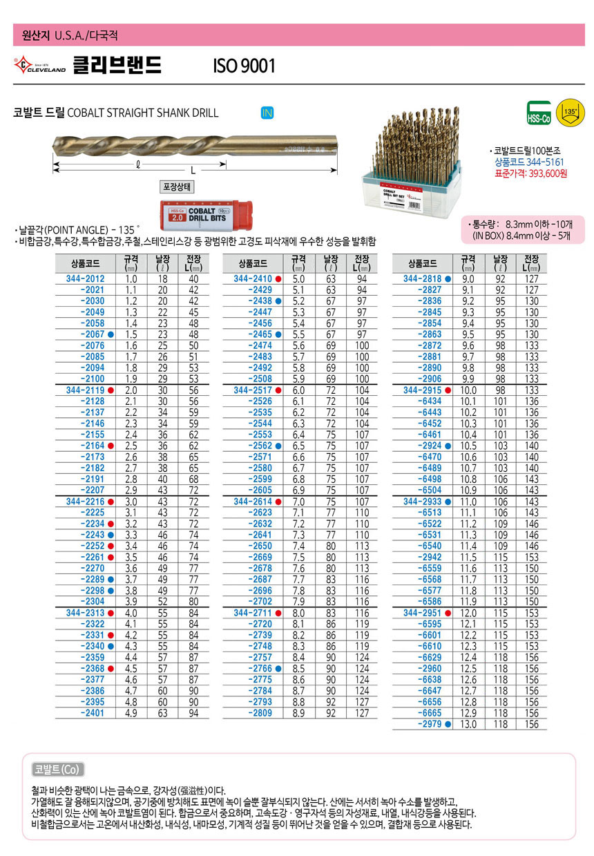 - 영문명 : COBALT STRAIGHT SHANK DRILL