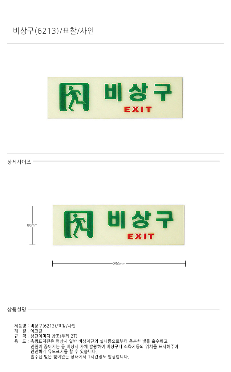 비상구표찰사인 80x250x2T 안내판 표지판 표찰