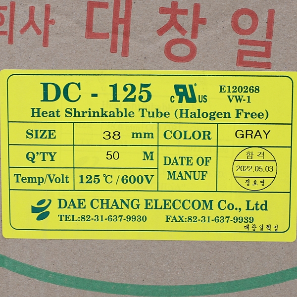 | 품명 및 모델명 | 수축튜브/ 38MM(50M)회색 |