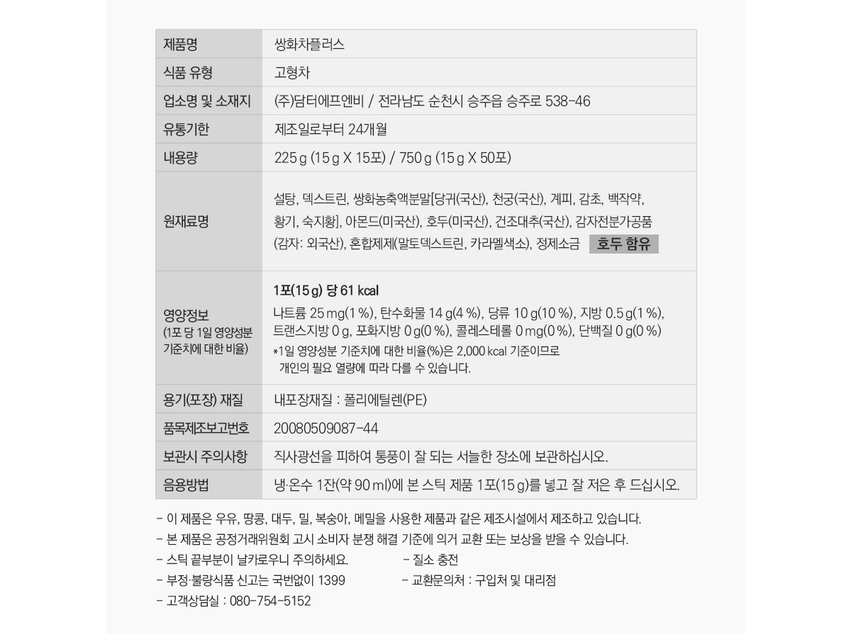 | 품명 및 모델명 | 쌍화차 플러스/50T |