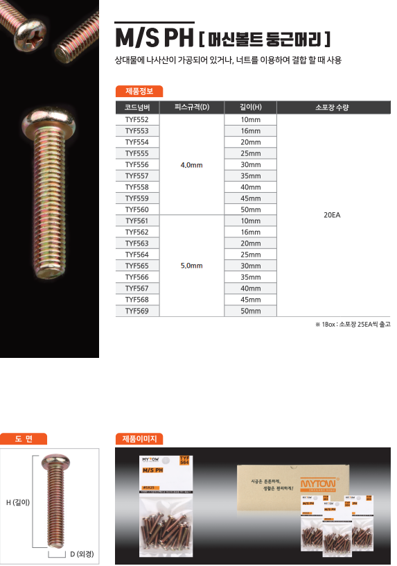 | 품명 및 모델명 | 둥근머리 머신볼트5*16 TYF562 (봉=20EA) |