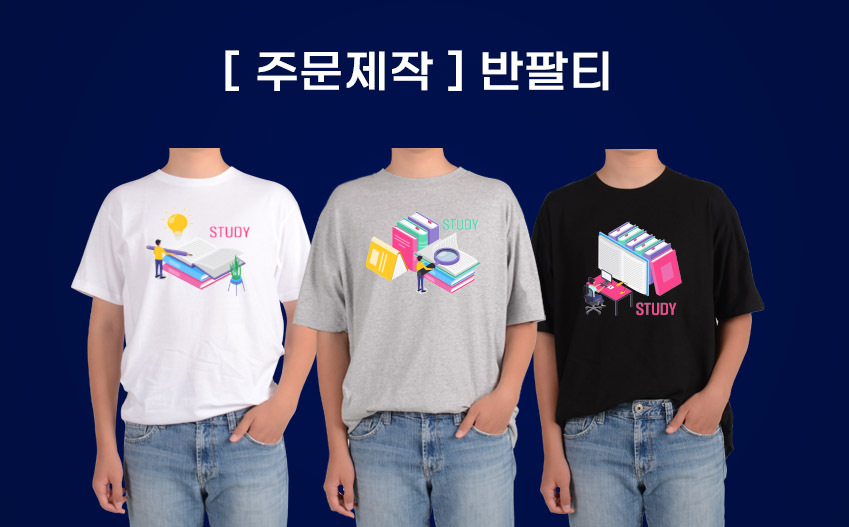반팔티 남여공용 도서관 공부 학교생활 STUDY 디자인 대학교 그림선택