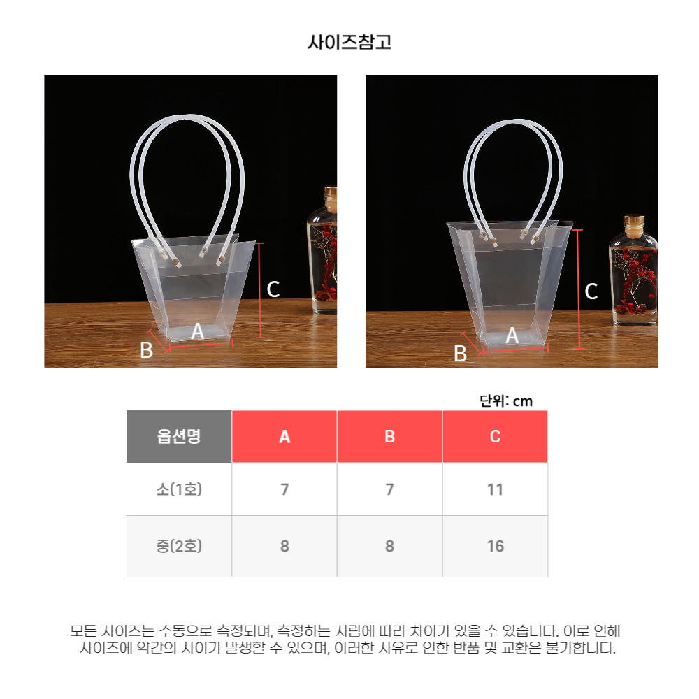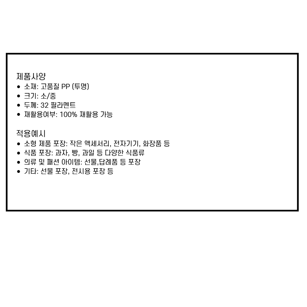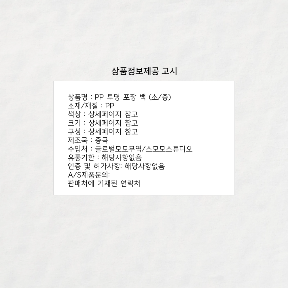 | 제품군 | 기타재화 | 품명 | 투명 쇼핑백 구디백 중 8x8x16cm |