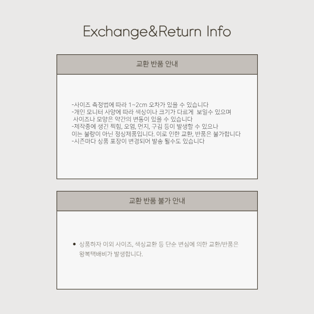 | 구입일로부터 18일 이내에 상품의 불량으로 인한 교환 및 반품 가능 | |||