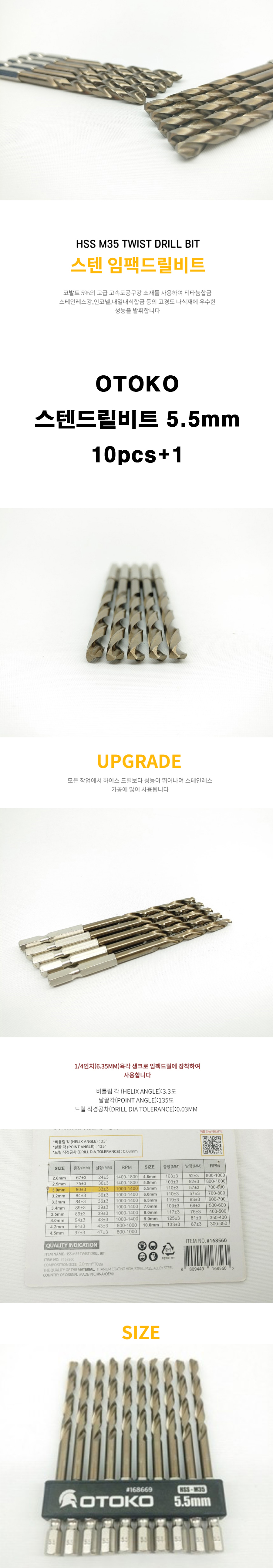 스텐드릴날 코발트길이 HSS M35 SUS 드릴비트 5.5mm 10pcs+1