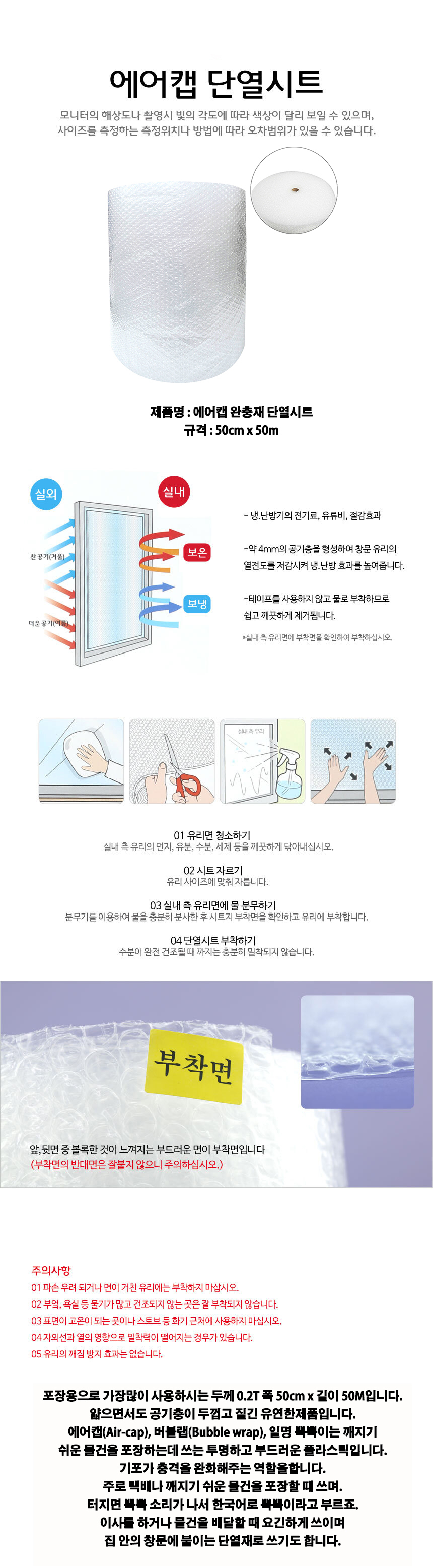 에어캡 뽁뽁이 0.2T 폭 50cm x 길이 50M -1롤 택배 포장용 완충제 단열 보온