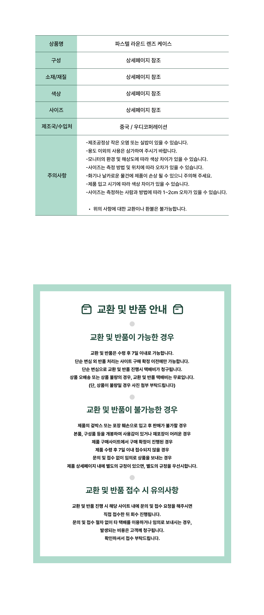 | 상품의 교환/반품/보증 조건 및 품질보증 기준 | |||