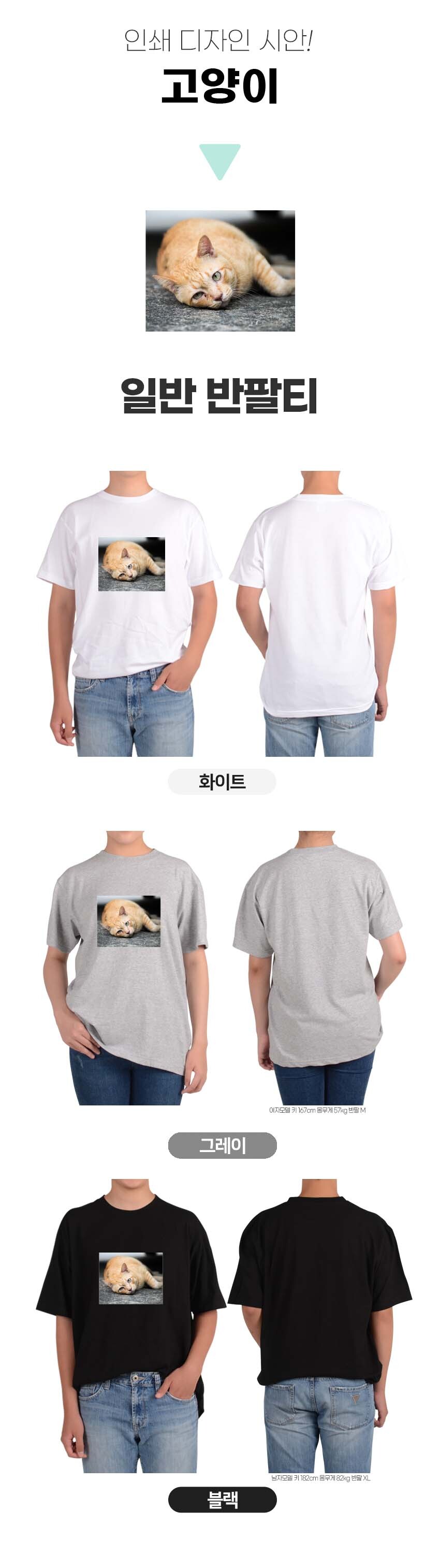 반팔티 반려동물 고양이 3번 그림 다양한색상 전사이즈